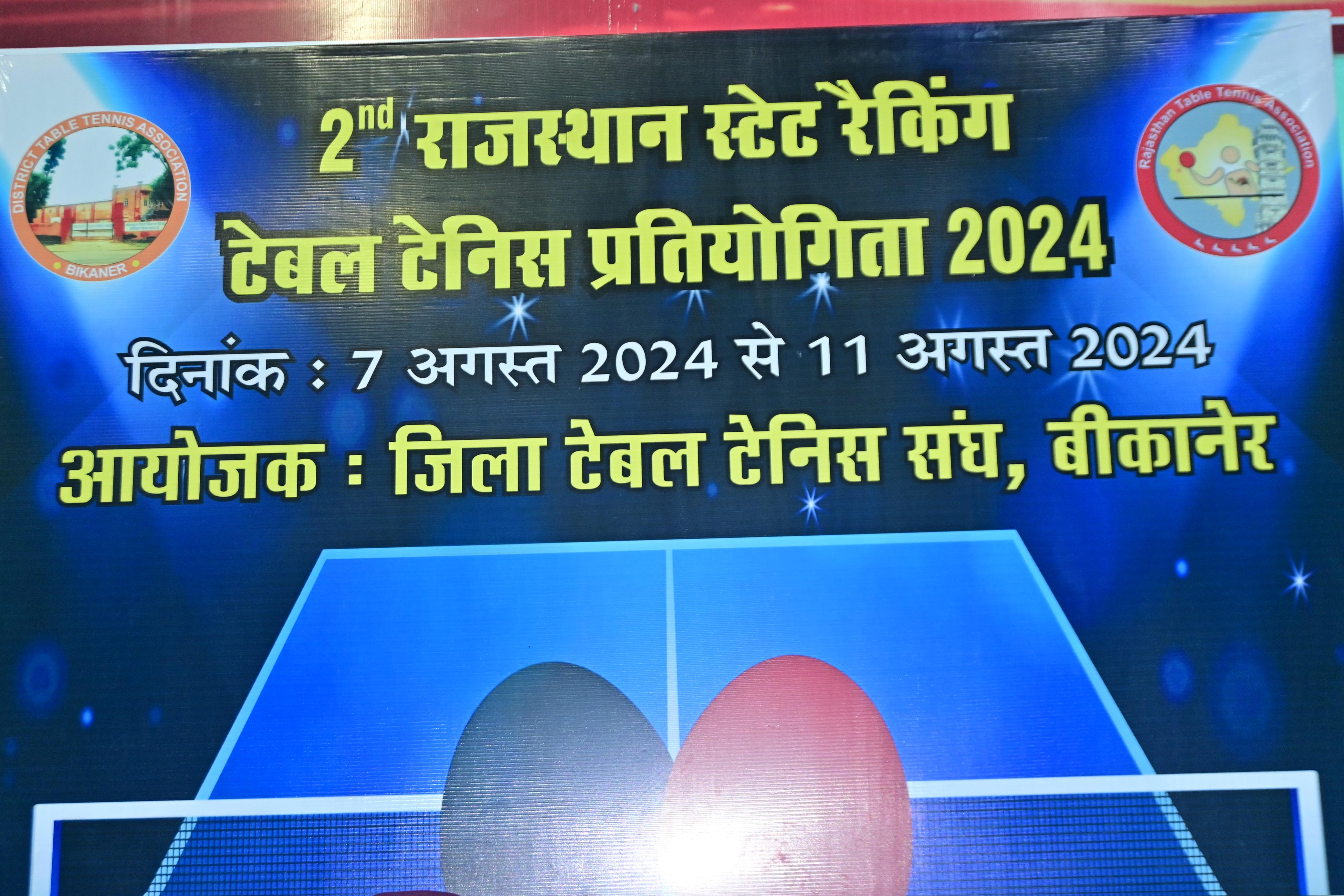 2nd Rajasthan State Ranking Table Tennis Championship Bikaner, 2024
